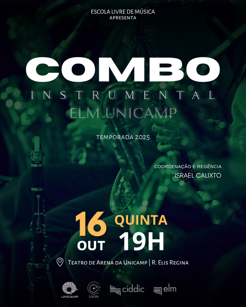 Nesta quinta-feira, dia 16 de outubro, às 19h, o Combo Instrumental ELM, formado por mais de 25 músicos e musicistas, sobe ao palco do Teatro de Arena para uma apresentação especial e gratuita, reunindo diferentes estilos, arranjos criativos e muita emoção.